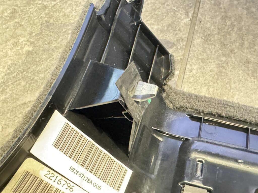 下方に移ります、運転席側右足サイドにあるヒューズボックスまわりのカバーですが、こちらも手前側はクリップどめ奥側はマジックテープで押さえてあるだけとシンプルなつくり。
