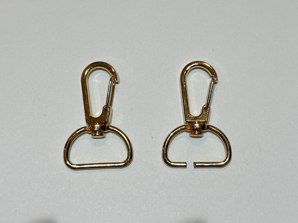 用意するのものは純正クレストキーホルダーのサイズに合ったDリング(Dカンとかナスカンとも言います)。サイズは18mmから20mmくらいでネジ式を探してみてください。