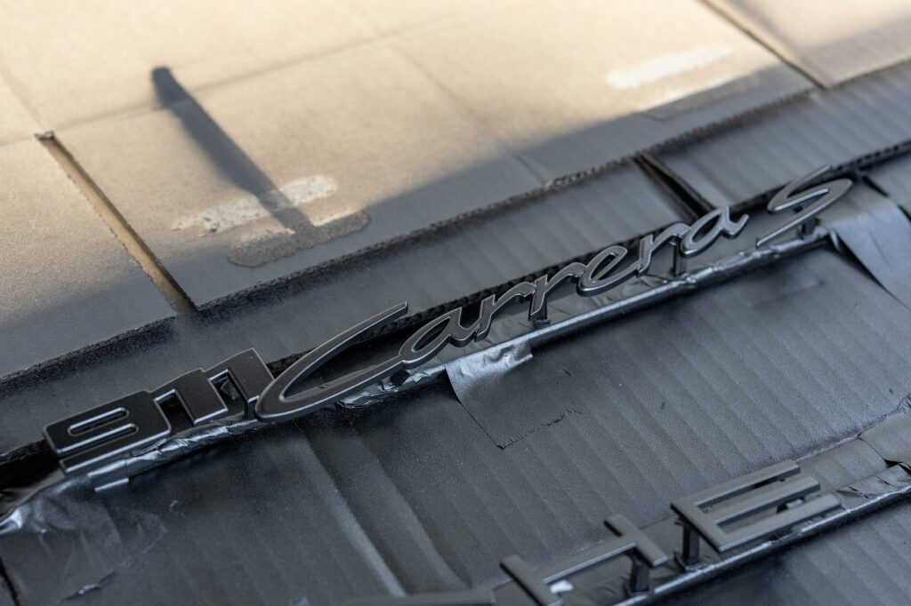 今回はDIYでリアの『PORSCHE』ロゴと『911CarreraS』エンブレムをそれぞれマットブラックに塗装してみました。
