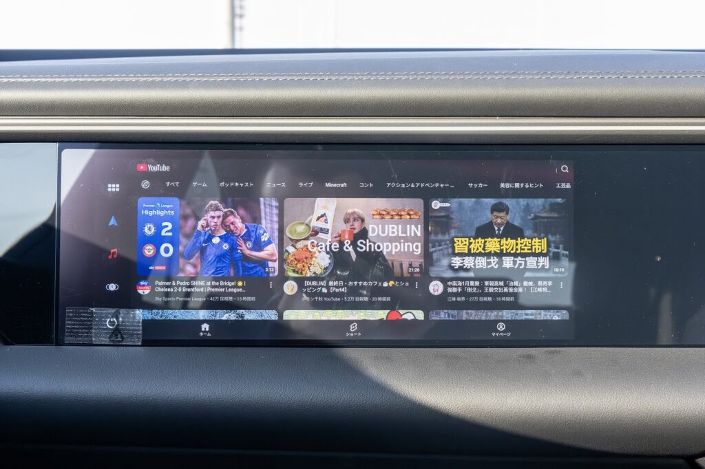 見てもわかるとおり内装は現行モデルから大きく進化しています。助手席前にはサブモニターがあり、YouTube視聴やネット閲覧が可能。